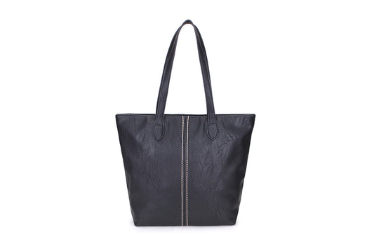LONG & SON LADIES FAUX LEATHER LARGE TOTE SHOULDER/WITH DETAILED STICTHING